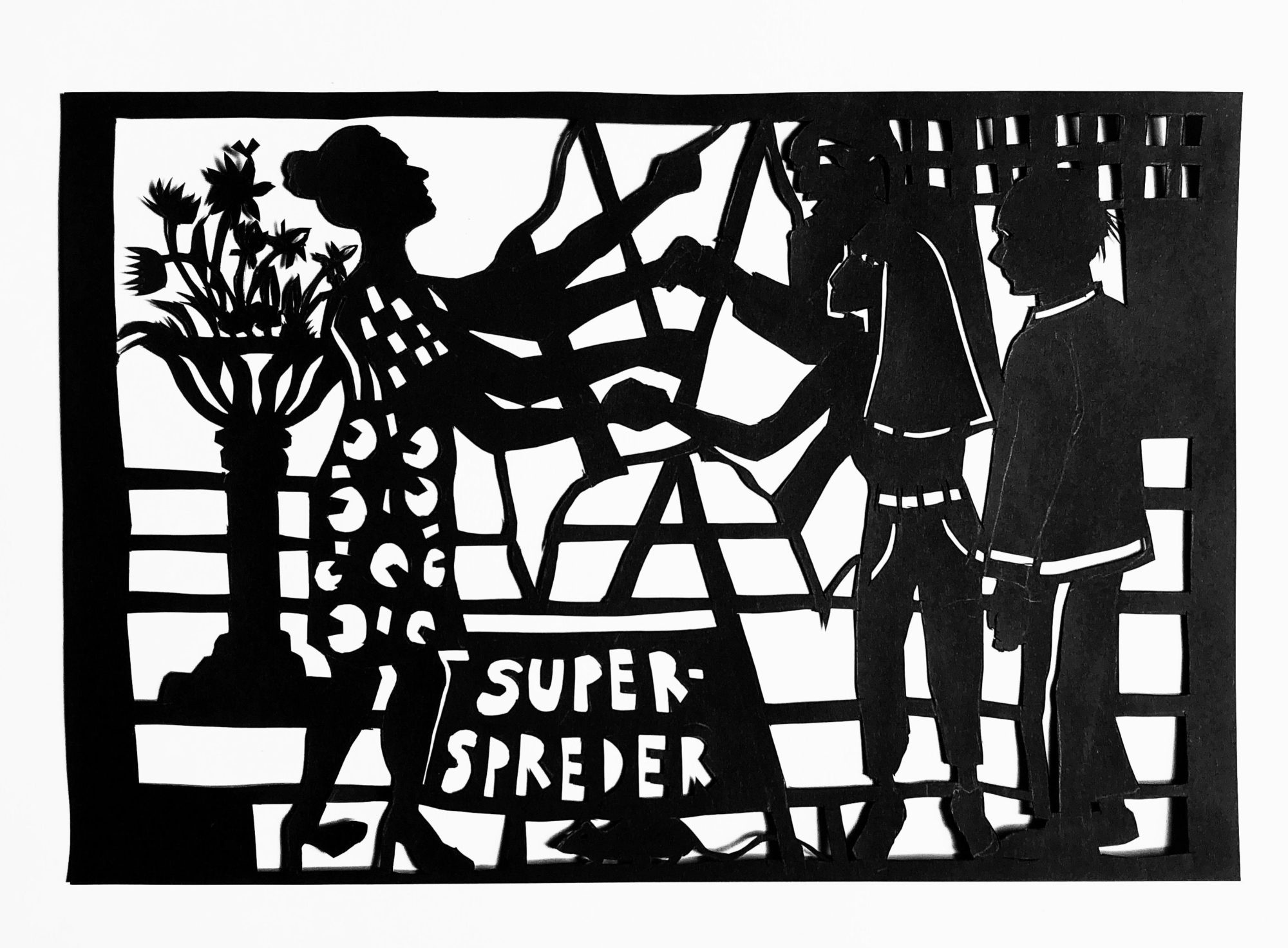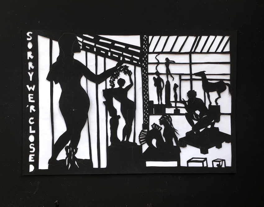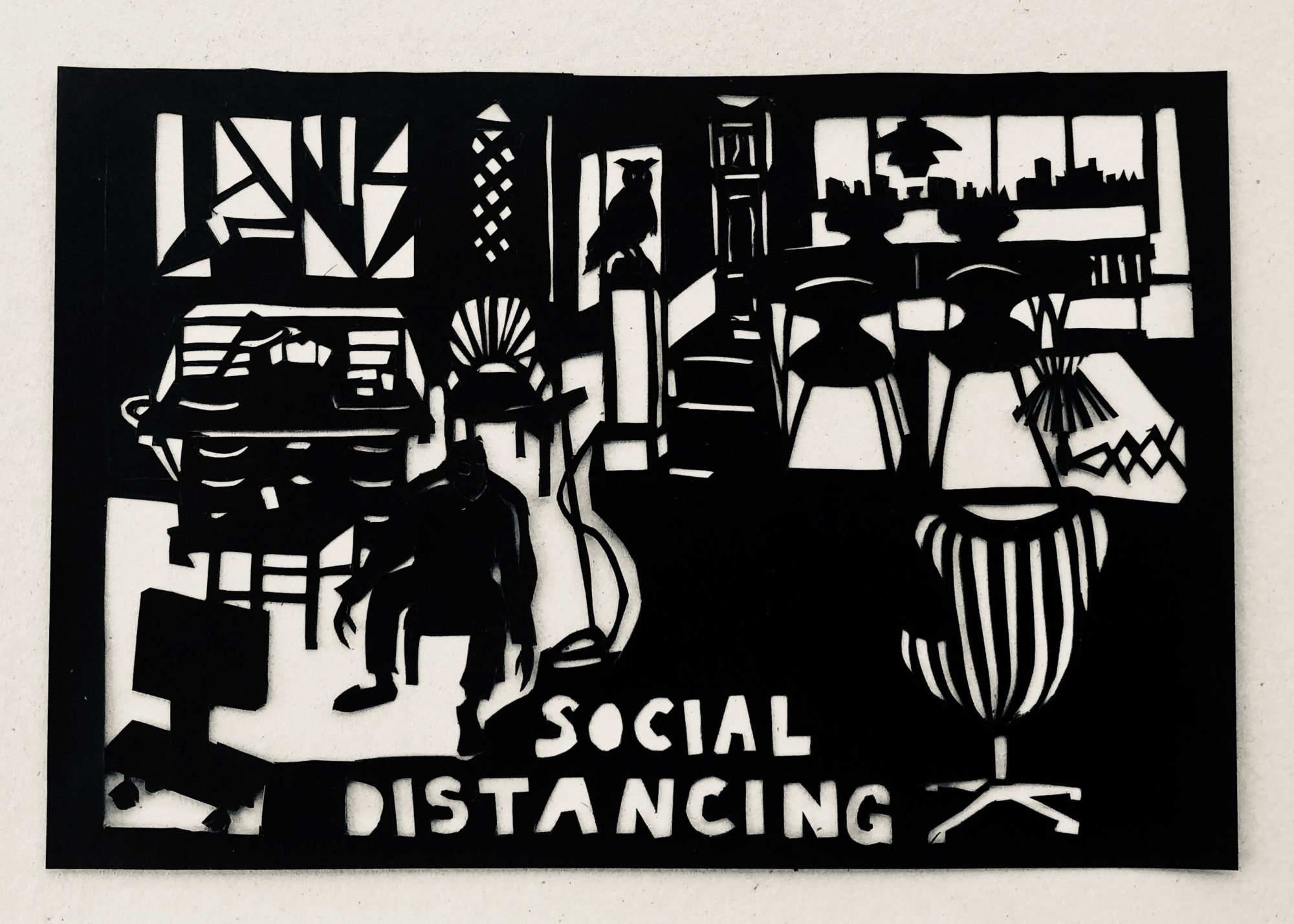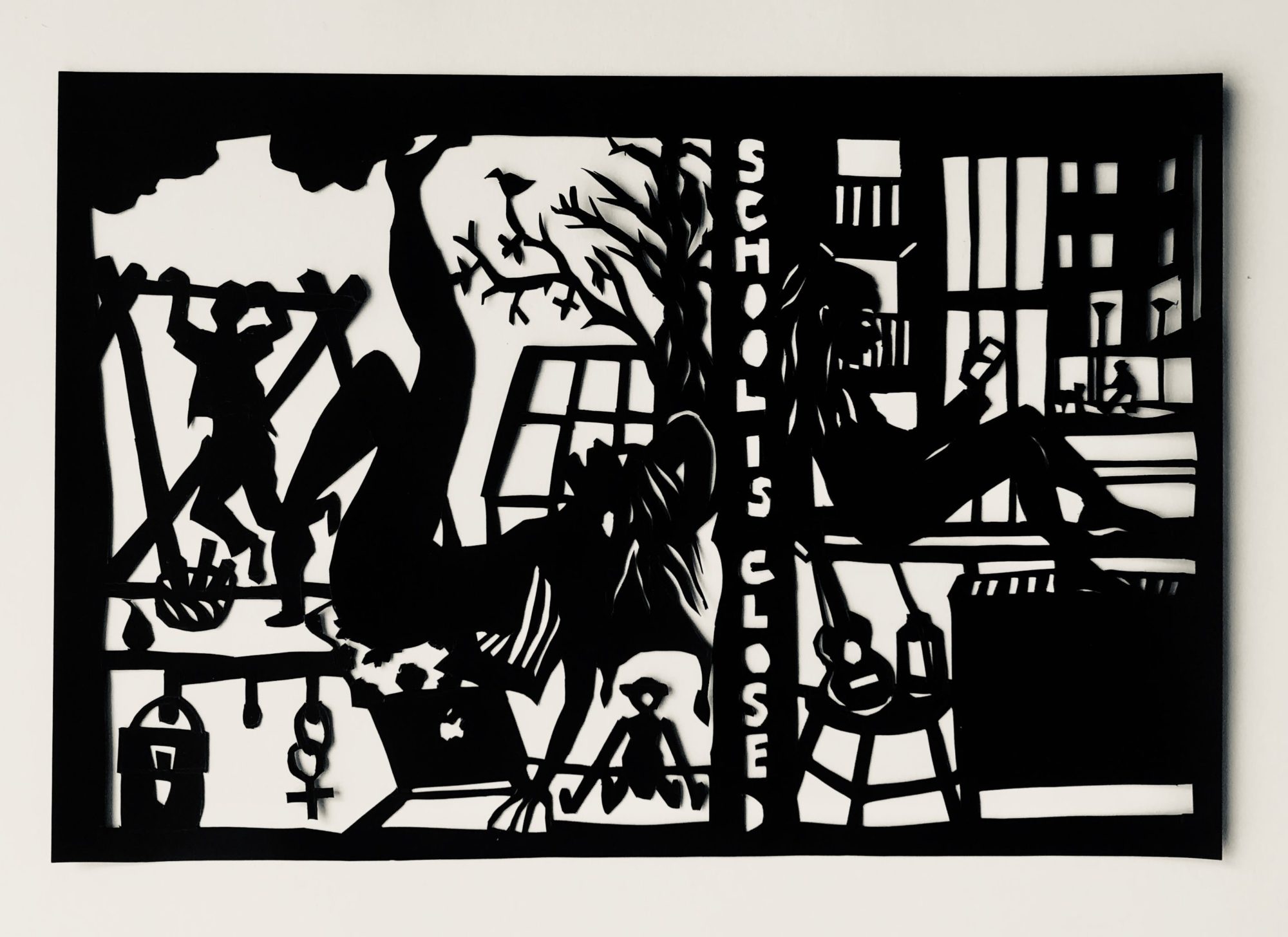 Corona-krisen har inspireret til en serie klip, i sort papir. Den forandrede hverdag i et nedlukket land, er den røde tråd i Corona Brevenes fortælling.